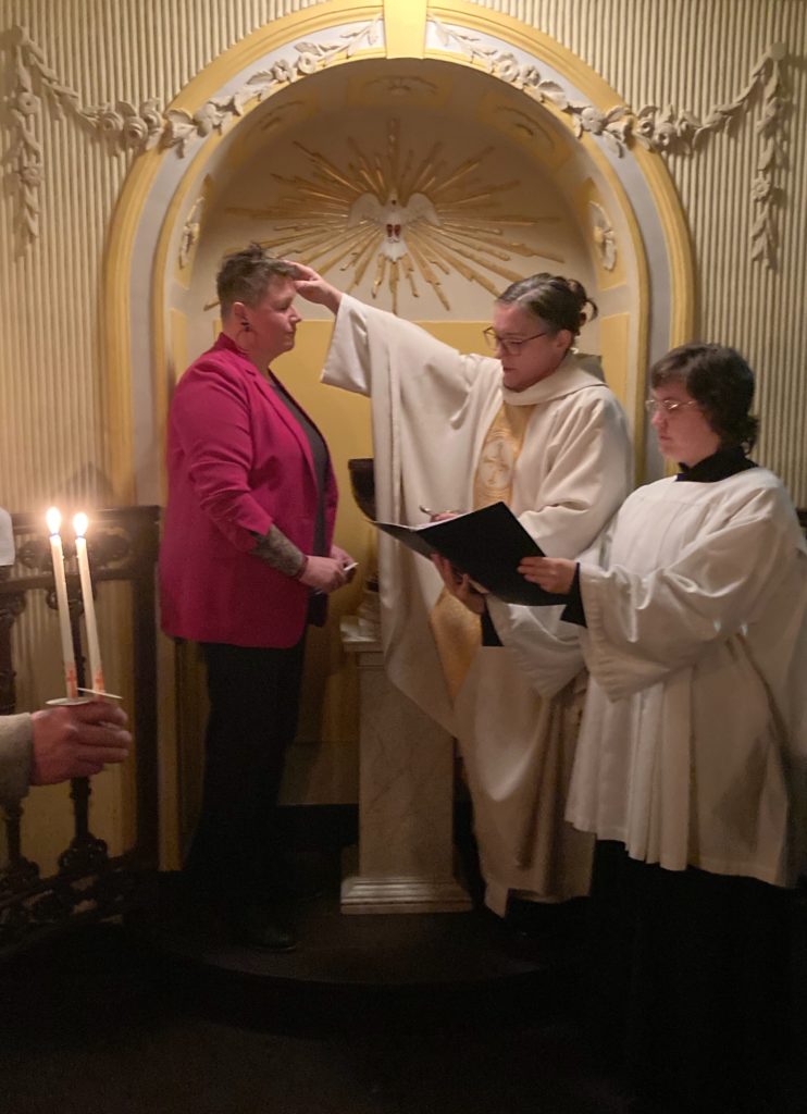Omdat het de doop van een volwassene betrof, vond in de Eucharistieviering ook direct de eerste Communie plaats.